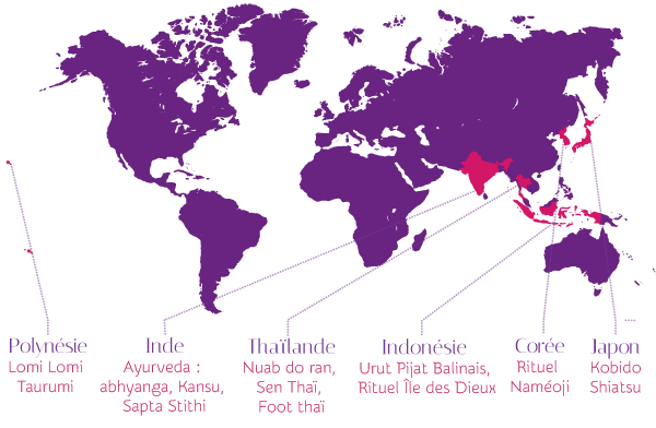 Soins traditionnels de Thaïlande, du Japon, d'Inde, de Polynésie et d'Indonésie